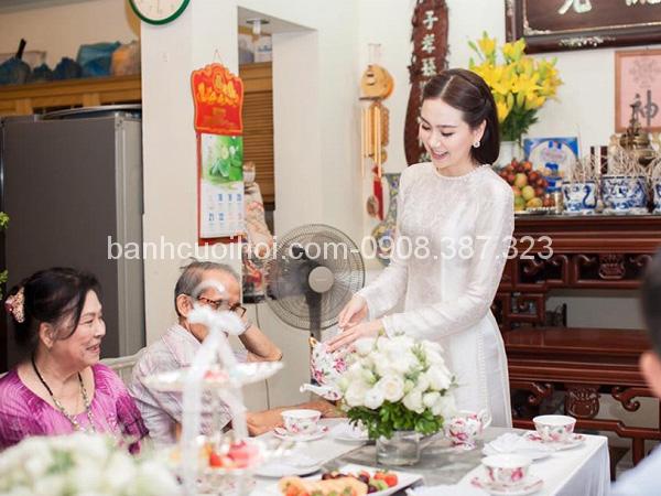 Những ngày đoàn viên, họp mặt gia đình, bạn bè người Việt đều không thể thiếu trà và rượu. Dùng để dâng lên bàn thờ tổ tiên, để ông bà tổ tiên về chứng giám cho đôi trẻ và cũng là để xin phép tổ tiên cho đám cưới được diễn ra vui vẻ, hạnh phúc.